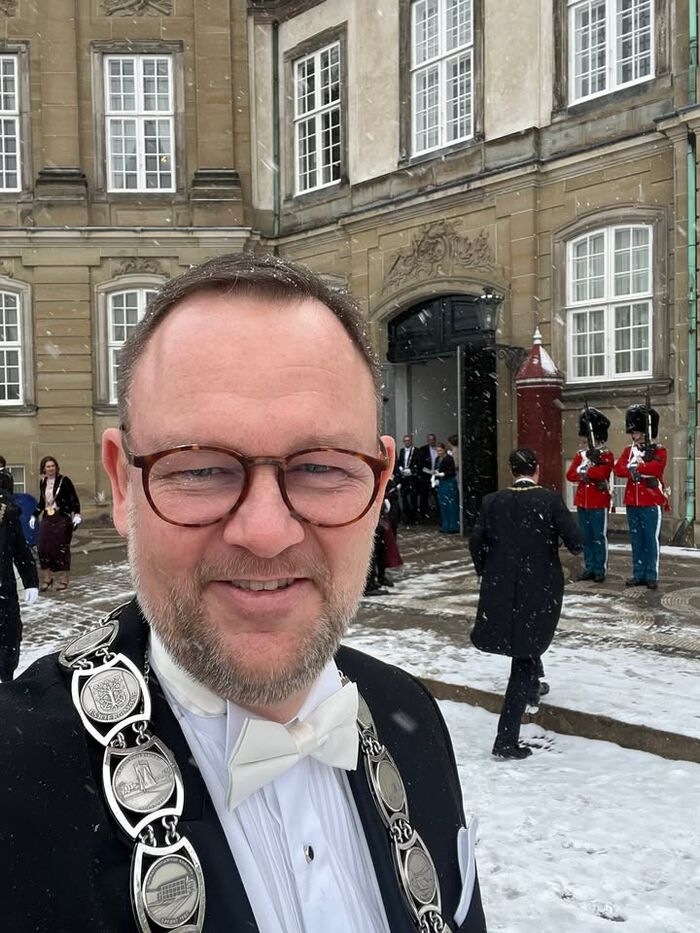 Det var en rigtig god oplevelse og en anerkendelse af de mange folkevalgte i hele landet. Jeg fik en god snak med Kongen om Royal Run i Ribe i foråret, som jo var et fantastisk arrangement - og fik fortalt historien om, hvordan jeg måtte kæmpe mig gennem folkemængden i Ribe for at nå frem til startstregen - hvor jeg blev reddet af vikingerne, som også skulle samme vej for at starte løbet. Så da de kom gennem gågaden, sprang jeg ind i slipstrømmen og nåede lige akkurat frem inden Kongen kom.